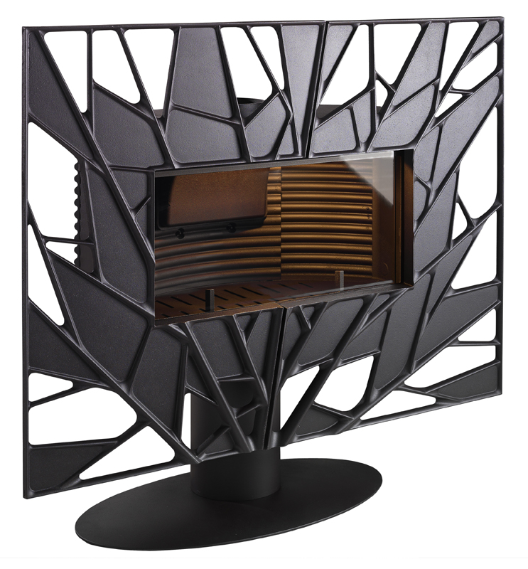 ガヤシリーズの中でも特に目を惹く斬新な意匠が特徴のガヤ・フィーユ。門扉を連想させる独特なフレームは、それ自体が高い鋳物技術の証しでもあります。最長70mmの薪まで対応し、ポストコンバッションを搭載して高出力・高環境性を実現した上位機種です。